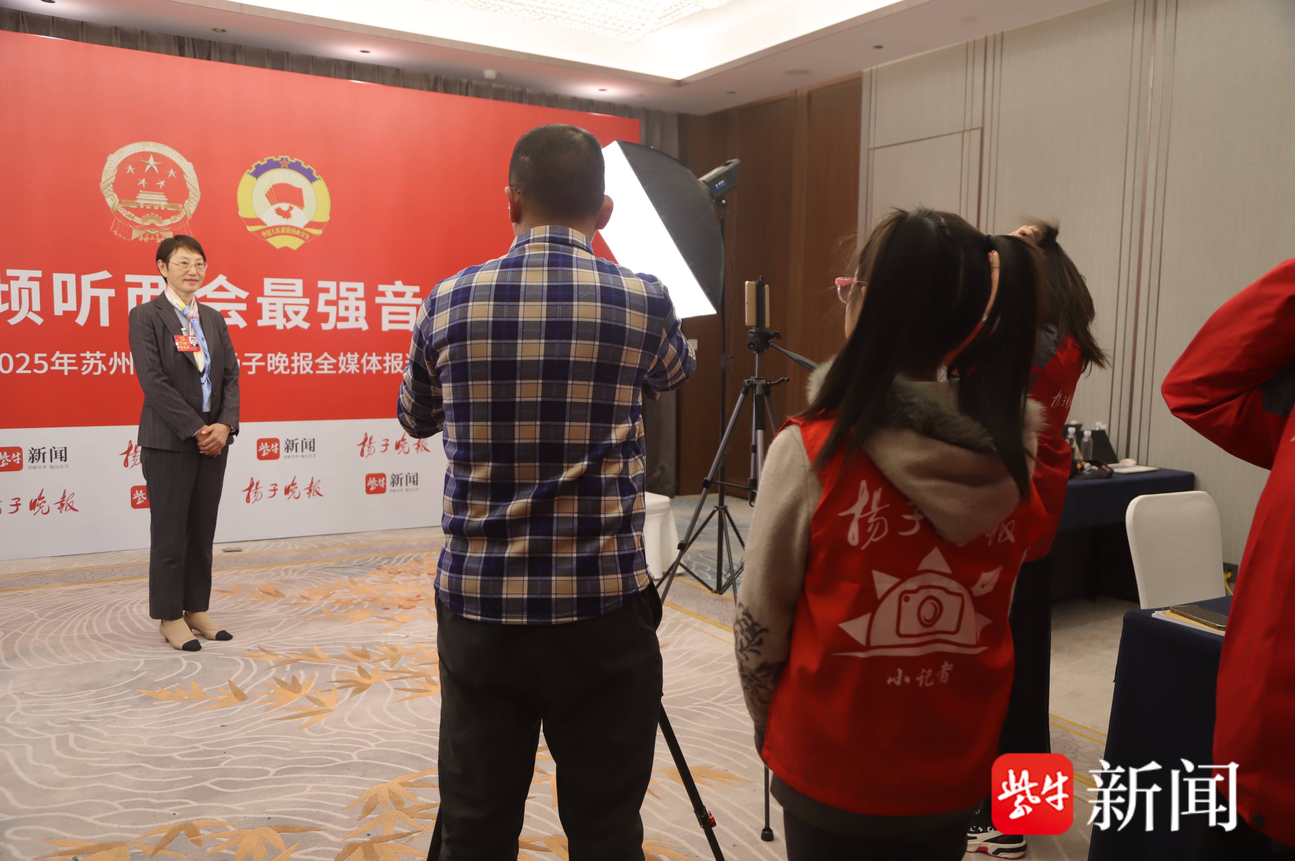 1月14日,扬子晚报苏州新闻小主播取舍赛“小小金发话器”的获奖选手们化身“出镜小记者”,走进苏州两会扬子晚报演播室,参与本次融媒体报说念行径。他们与大记者联袂, 凝听东说念主大代表发言,深远体验新闻采访、拍摄使命的每个才气,开启记者办事“初体验”。