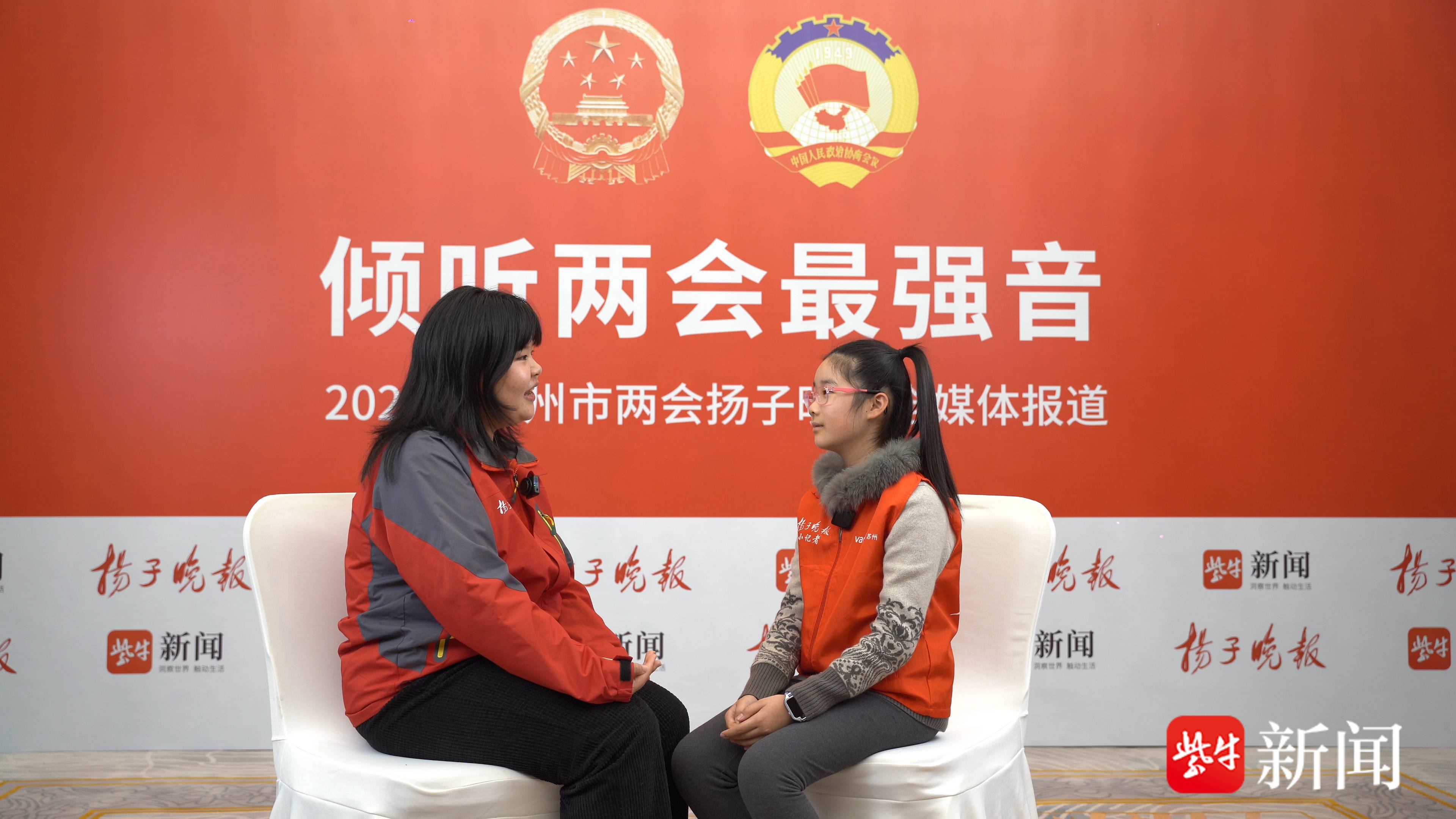首先,刚踏入扬子晚报的两会现场的演播室,来自苏州市吴江区梅堰执行小学六(二)班的李岩和吴江爱德双语执行小学五年龄(八)班的赵雨桐还有多少敛迹,在扬子晚报/紫牛新闻记者的率领下,两位小记者逐渐熟谙现场环境,初步了解了两会内涵、新闻界说、记者职责及采访历程等常识。